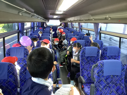 校外学習で初めてバスに乗り、風船運びなどのバスレクを楽しみ、笑顔がたくさん見られました。
