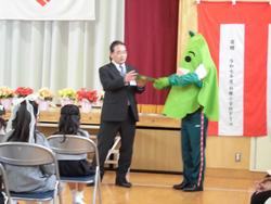 入学式には白根小のマスコット「ゆりっぴー」も登場し、1年生へ手紙を持ってきてくれました。