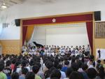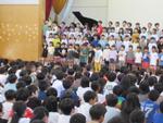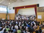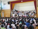 9月25日(水)に音楽集会がありました。今月は、1年生の発表でした。「はじめのいっぽ」を心を一つに歌いました。とてもかわいらしい歌声に、2年生から6年生のみんなも聴きいっていました。