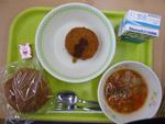 胚芽パン、コロッケ、牛乳とチーズ。栄養満点で体も温まりました。ご馳走様でした。美味しかったです♪