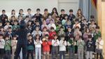 発表会のオープニングは、PTAコーラス。優雅な歌声に子どもたちもシーンとして聴きいっていました。その後、学級閉鎖中のクラスがある4年生と5年生を除き1年生から順に発表を行いました。
