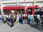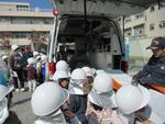 小机消防出張所から消防車と救急車も出動してくださり、訓練後にはそれぞれの車の中を見学し、教室へ戻りました。1年生は、国語科の「はたらくじどうしゃ」の学習につながるように、ゆっくりと見学をさせてもらいました。たくさんの機材や機器が積まれていることに驚いたり、何に使うものなのかと疑問に思ったりしていました。質問もしながらゆっくりと見ることができたので、学習に生かしてほしいです。