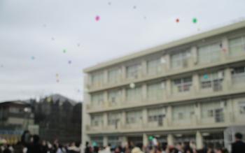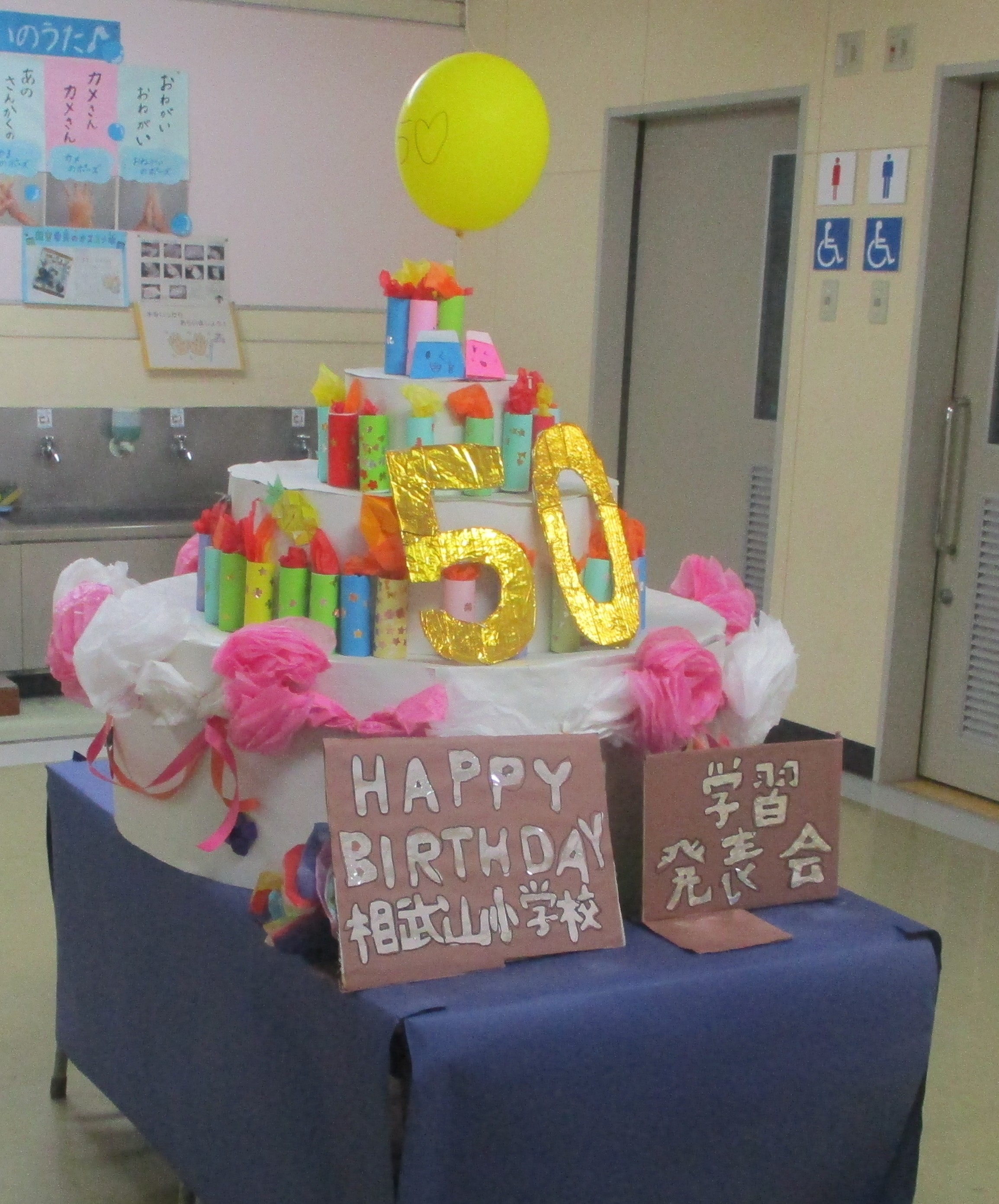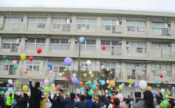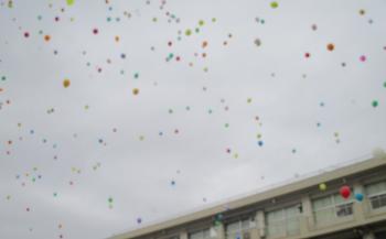 50周年記念式典 バルーンをとばそう!「相武山小学校 50周年 せーの おめでとう!」