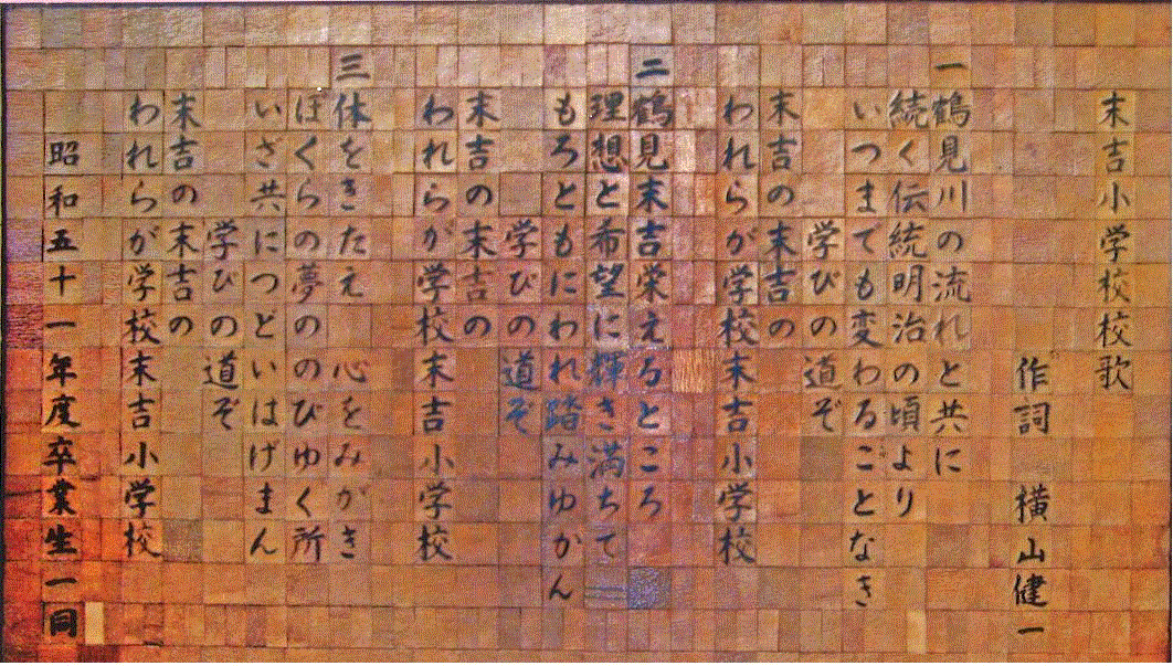 横濱市末吉尋常小學校として獨立にともなって作成。この土地は古代遺跡が多いいところで土器等の出土品も多い。陶は末に通じて、末吉の地名と配し、桜は当時、この土地に多かったところから採用した。(学校沿革誌より)