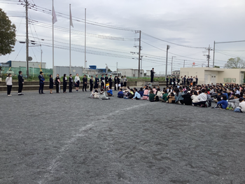 心配していた雨も降らず、校庭で着任式・始業式を行うことができました。