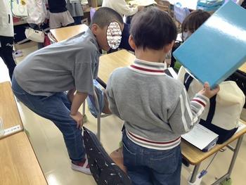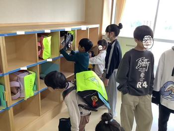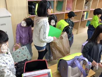 ランドセルや荷物を一緒に入れる6年生