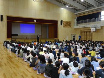 音楽朝会は実施していましたが、体育館で全校朝会行うのは初めてということです。すばらしい態度で話を聞けました。