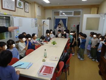 1年生が学校探検をしています。