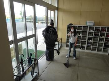委員会活動が始まっていないので、今日は学校用務員さんが立ってくださいました。