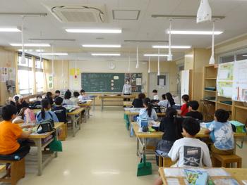 スマイル先生や補助の先生はじめ、たくさんの人が、1年生の教室に入ってサポートをしてくれています。