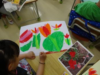 図工の時間には、チューリップの絵を描いていました。