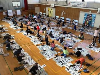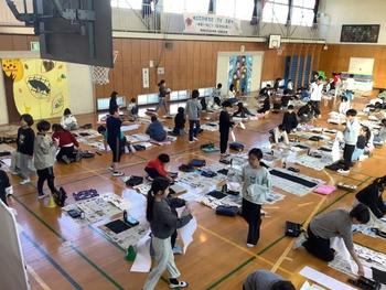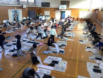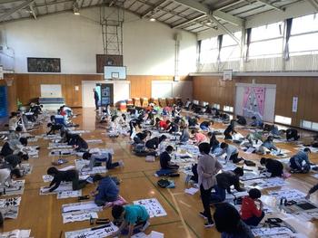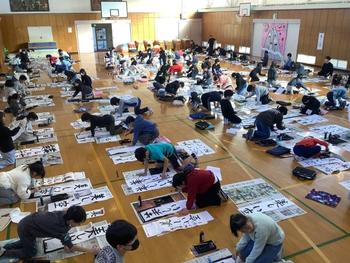 1月14日(水)に、学年合同で書き初めを体育館にて行いました。子どもたちは冬休みの宿題として、練習を重ね、教科書の手本をじっくり見ながら清書しました。