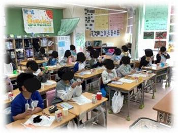 どのクラスでも歯に残っている歯垢が少なく、日頃からきちんと歯を磨いていることがうかがえました。穂積先 生に正しい歯のみがき方を教えてもらい、歯を大事にしようとする気持ちをもちました。