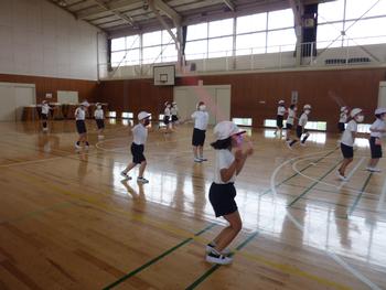 体育館では、3年生が体育で楽しそうに縄跳びを行っていました。