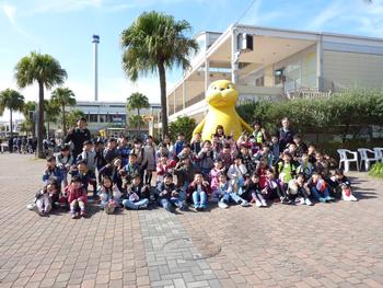 今日は、待ちに待った遠足の日です。1年生と2年生は、八景島シーパラダイスへ出かけてきました。すばらしい天気に恵まれすばらしい一日になりました。出発の時、6年生が手を振って見送りをしてくれました。1年生も嬉しそうでした。