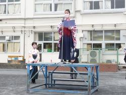 ▲1年生からの感謝の言葉 ▲コサージュ渡し