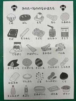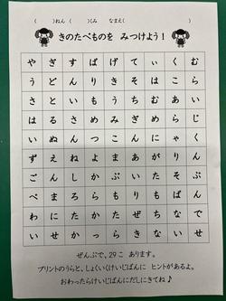 ほかにも、1年生の国語の学習と関連させて、言葉探しのプリントを作成しました。29個の黄の食べ物を探せるプリントで、1~6年生まで楽しんで取り組む姿が見られました。