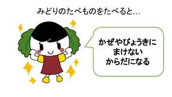 給食時間には、その日の給食に使われている赤の食べ物を「きょうのみどりのたべもの」としてテレビに表示していました。