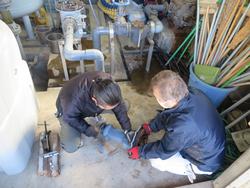 今年度の検査でモーター音が大きくなってきているという指摘があり、ベアリングなどを交換する工事を行いました。循環機の大きなモーターを分解し、清掃・塗装・調整も行いました。