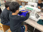 二人一組になってミシンを使い、アドバイスをもらいながら徐々に上達していく姿が見られました。