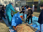 5月の上旬から育てていた高田東米を脱穀し精米しました。JA横浜の方に来ていただき、機械の種類や手順の説明を聞いた後、乾燥させた稲を脱穀機にかけました。脱穀後は目の粗いふるいにかけてごみを取り除いたり、籾摺りを使って玄米にしたりしました。子どもたちは収穫までにたくさんの時間をかけていることや農家さんの様々な種類の作業があることを知りました。