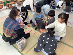 26日に「昔遊びの会」を行いました。高田のまちに住んでいる、昔遊びの名人に遊びを教えてもらいました。名人に遊びのコツを教えてもらったり、話をしたりすることでもっと仲良くなり、楽しく活動することができました。
