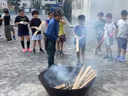夏休み前は、鴨居原市民の森のみなさんと竹の灯篭をつくり、できあがった灯篭を竹山のお祭りで飾りました。