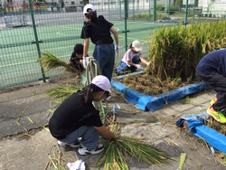 5年生 総合 稲を収穫・脱穀しました