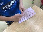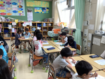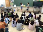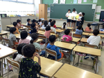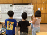 シャッフル音楽の成果を発表しました。それぞれのグループごとに、曲名を紹介したり、作品を見せて頑張ったところを発表したり、演奏した曲名をあててもらったりしました。発表する方も、聴く方も立派でした。シャッフル音楽発表会、大成功でした。