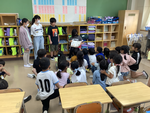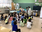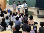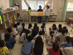 読書タイムの時間に、図書委員会による読み聞かせを、1・2年生のクラスで行いました。