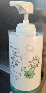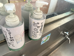 学校保健委員会が中心となり、石鹸を使用した手洗いとハンカチ携帯の意識を高める取り組みを進めています。まず、委員会の児童が石けんボトルを写真のように明るくきれいにデザインしました。カラフルなボトルが並び、手洗いへの意欲が自然と高まります。