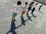 理科の学習で「かげつなぎ」にチャレンジしました。お友達の体に直接触れずにかげだけをつなげることはできるかな?という問いに対し、「縦に並んだらできる!」「手を重ねるようにしたらつながった!」とたくさんの発見をすることができました。さいごにみんなでかげおくりをして大満足の3年生でした。