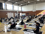 あけましておめでとうございます。3年生は、初めての体育館書初めを行いました。