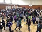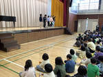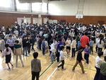 8時30分から体育館にて、図書集会を行いました。図書委員会が考えた、その学年にふさわしいおすすめの本のカードを5枚持って、他の学年とじゃんけんをして、じゃんけんに負けた方が、自分の学年のカードをじゃんけんをした学年の友達に渡すという活動を行いました。