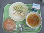 ソフトフランス 牛乳 白身魚のパン粉焼き ポテトリヨネーズ 野菜スープ |