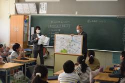 クリーンナップが終わる前に畑山会長からお話を伺う中で、昔の佃野公園の様子についても話がありました。45年前にこの佃野公園は埋め立てて出来上がったものだそうです。子どもたちはとても驚いており、自分たちの住む地域について新しいことを学ぶきっかけともなりました。