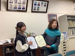夏休みに社会科の学習と関連し、税金と身近な暮らしについて考え、標語や絵はがきに表現することに取り組みました。そこで、応募した「税に関する絵はがきコンクール」では、税務署長賞、女性部会賞、努力賞を受賞しました。入賞した人たちに賞状が贈られました。