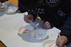 1月19日~23日は、給食週間でした。給食委員会では、「マナー名人になろう」の取り組みの一つで豆つまみイベントを行いました。制限時間30秒間で、小さく切ったスポンジ・ビーズ・大豆を正しい箸の持ち方で何個つまめるか挑戦しました。「スポンジは簡単だけど、大豆やビーズがつるつるとすべって難しい!」「もう一回チャレンジしたい!」などと楽しみながら参加する声が挙がり、イベントは大盛況で終わりました。