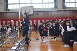 新たに104名の新入生が豊岡小学校に入学しました。入学式では2年生が校歌を披露し、6年生が学校での楽しい生活の一部を紹介してくれました。