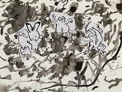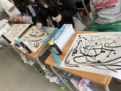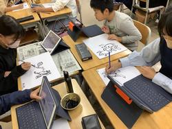 図工では、国語や社会で学んだ水墨画に挑戦しました。鳥獣戯画に登場するうさぎや蛙、狐など、好きな動物を選び、筆のタッチを生かしてユーモラスな動きを表現しました。筆の運び方や濃淡の出し方を工夫しながら、のびのびと楽しそうに描く子どもたちの姿が印象的でした。