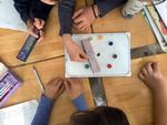 算数で円の学習が始まりました。導入では、1年生のとよおかオリンピックで体験した「玉入れ」について考え、そこから円にはどのような特徴があるのか捉えるために物差しで長さを測ってみたり、コンパスで実際に円を描いてみたりといった活動をしました。コンパスを使って模様を描く楽しさや便利さも、伝えていきたいと思います。