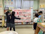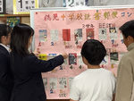 12月4日に鶴見中学校の図書委員が来校し、豊岡小学校の図書委員へ「読書郵便」を届けにきてくれました。鶴見中学校では、全生徒で「読書郵便」に取り組んでいて、生徒から人気のあったものを冬休み前に鶴見小学校、豊岡小学校と鶴見図書館に紹介する活動をしています。今回は豊岡小学校へ「読書郵便」コンクールで人気の作品を届けにきてくれました。おすすめポイントや、工夫されている点、人気の秘密を豊岡小の図書委員へ教えてくれました。