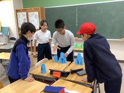 5回目のコーチング授業です。今回は「スポーツスタッキング」に取り組みました。12 個のプラスチック製のカップを、決められた形に積み上げたり崩したりして、チーム内でそのスピードを縮めることにチャレンジしました。この活動を通して、プラスの声かけが大切なことを学びました。