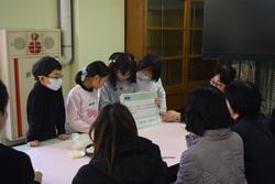 6回目、最後のコーチング授業です。今回は「チームビルディング」のワークでストロータワー制作に取り組みました。決められた時間内に、セロテープ1巻だけ使ってストローをつなぎ合わせ、高さを競います。どのようなつなぎ合わせ方をしたらよいか話し合ってからスタートしました。この活動を通して、意思疎通することや役割分担が大切なことを学びました。
