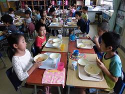 夏休みが明け、再び給食が始まりました。しっかり器を持ってもりもり食べている子を探してみました。