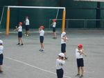 6月16日(火)6年生の校庭体育も始まりました。体つくりの運動に取り組む前に、間隔を十分取りながら、準備運動をていねいに行っていました。