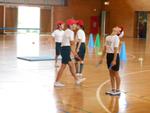 7月16日(木)2時間目は体育館では6年生が体つくりの運動に取り組んでいました。子どもたちは、なわとびを使った運動に挑戦していました。校庭では4年生がリレーを楽しんでいました。風を切って、さっそうと走っていました。