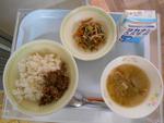 11月18日(水)本日の給食の献立は、はいがごはん、牛乳、ビビンバ(肉)(野菜)、AZUMA風だいこんスープです。本日のキャベツとダイコンは都筑区東方の野菜です。本校の給食には定期的に学区の農家の野菜を取り入れています。
