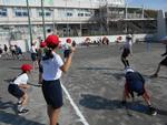 4年生が体育で学習したタグラグビーのまとめとして、学年全体でリーグ戦をしています。