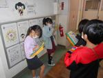 3年生が社会科の学習として、校内の消防設備について調べました。